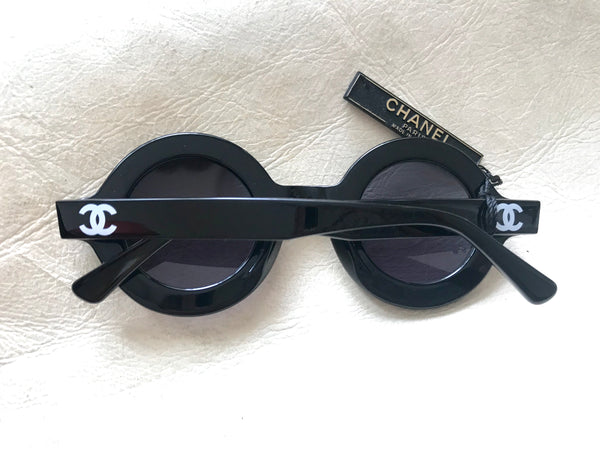 This is a vintage CHANEL black round frame sunglasses that American celebrities such as Pharrell Williams, Rihanna, and Mary-Kate Olsen also have!
